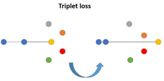 Triplet loss a été proposée à l’origine dans l’article FaceNet (Schroff et al. 2015) et a été utilisée pour apprendre la reconnaissance des visages d’une même personne dans différentes poses et sous différents angles.