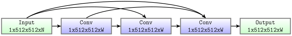 Universal Function Approximator (UFA) Cet UFA - également présenté en amont - est utilisé pour mélanger avec précision des caractéristiques provenant de différentes échelles ainsi que les coordonnées cartésiennes. Ce module reconstruit la fonction de mappage de l'espace cartésien vers une caractéristique spatio-spectrale de taille 1$ \times 512 \times 512 \times 16$. Cependant, contrairement à l'UFA amont, la taille du noyau $k$ a été fixée à $3$ pour prendre en compte le voisinage.