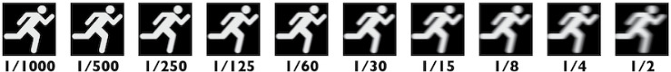 Effet du temps d'intégration (en seconde) sur le flou de bougé